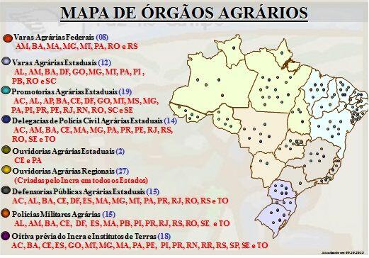 Juntamente com a Comissão, a OAN elaborou também o Plano Nacional de Combate à Violência no Campo (CNVC) com 15 medidas para prevenir, combater e reduzir as diversas formas de violência praticadas contra trabalhadores rurais, proprietários rurais, remanescentes de quilombos, ribeirinhos e atingidos por barragem. Entre as ações estão a criação de varas agrárias federais e estaduais, promotorias, defensorias públicas e ouvidorias agrárias nos Estados e polícias militares e delegacias especializadas em conflitos no campo (confira no mapa abaixo os órgãos agrários em cada estado brasileiro).