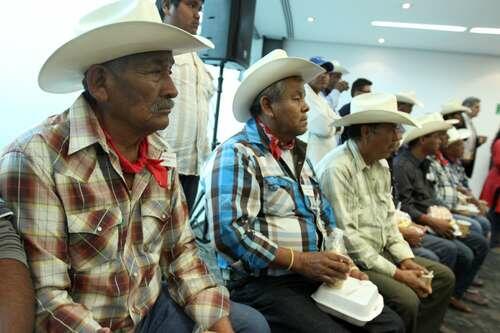 Líderes de los ocho pueblos de la tribu yaqui que se reunieron con