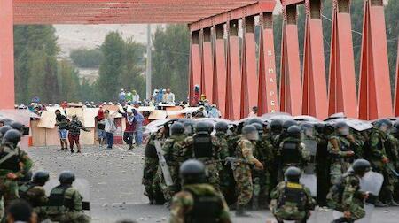 El ministro del Interior José Pérez dijo a periodistas en Lima que desde el inicio de la protesta en marzo unos 140 policías han resultado contusos. Otros 600 policías han sido enviados a esta ciudad sureña donde los negocios, bancos, mercados y escuelas están cerrados. Gustavo Rondón, legislador que representa a la zona, dijo a la prensa en el Parlamento de la capital “es necesario hacer todos los esfuerzos para traer paz al país, el país no puede polarizarse más”.