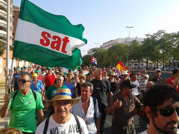 El paso de la marcha popular del SAT por la provincia de Sevilla comenzó el pasado miércoles desde Utrera (ver http://www.lahaine.org/index.php?p=63776 ), y de allí se dirigieron a Los Palacios (Sevilla) y Dos Hermanas, y luego a Bellavista, barriada de la capital, desde donde parten en manifestación hacia el centro de la ciudad, donde se dirigirán a la Plaza de España, sede de la Delegación del Gobierno en Andalucía.